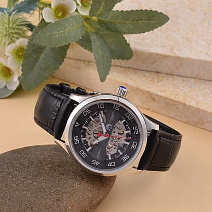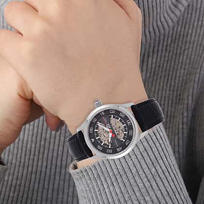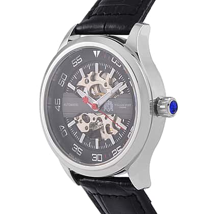WILLIAM HUNT 5 ATM Water Resistant Automatic Movt. Watch in Silver Tone with Black Leather Strap