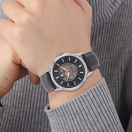 WILLIAM HUNT Automatic Movt. 5 ATM Water Resistant Watch With Skeleton Display - Black Leather Strap