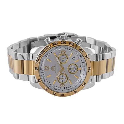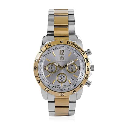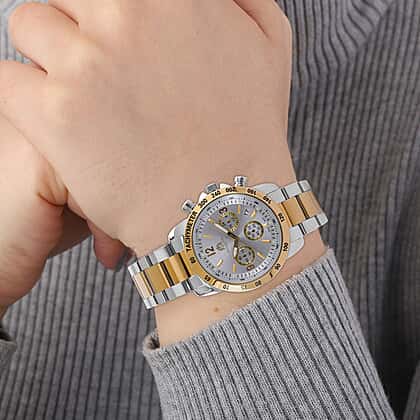 William Hunt Designer Watch with fully functional Chronograph Water Resistant Silver Dial with Luminous Hour Markers and Watch Hands with Two Tone Metallic Strap