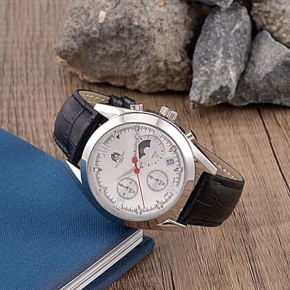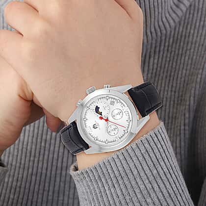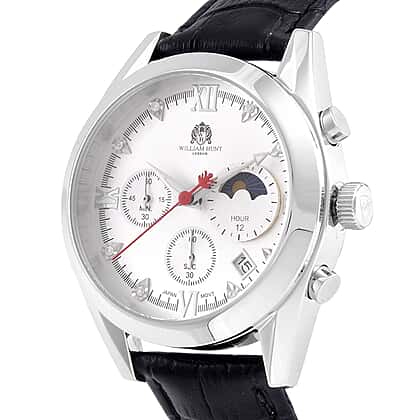 William Hunt Moissanite Watch 40 mm White Dial 5ATM Water Resistance Stainless Steel with Black Leather strap