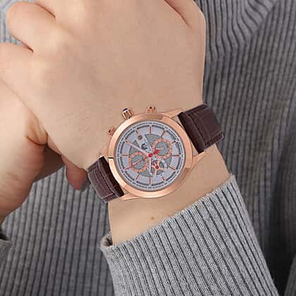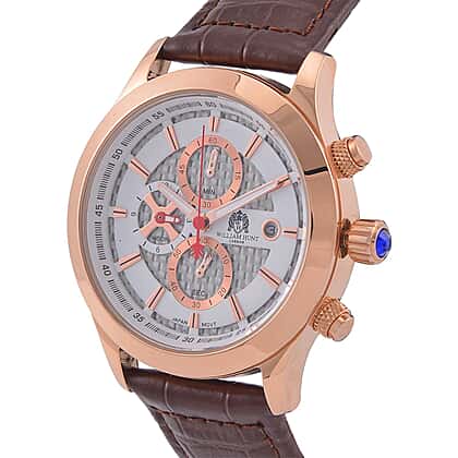 William Hunt Multifunction 5 ATM Water Resistant Watch with Brown Leather Strap