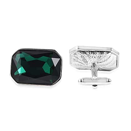 William Hunt Simulated Emerald Cufflink in Silver Plated