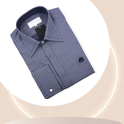 William Hunt Saville Row Forward Point Collar White and Dark Blue Shirt Size 17.5
