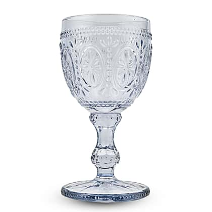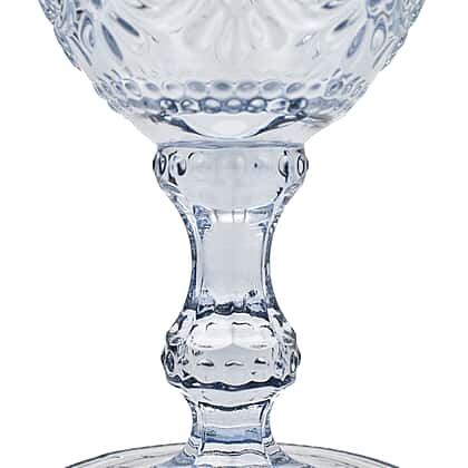 Add a touch of classic charm to your table setting with the Lesser & Pavey Set of 4 Blue Wine Glasses. Each glass features an intricate embossed pattern that wraps around the bowl, capturing the light beautifully. The sturdy base and elegantly curved stem blend functionality with style. These glasses add classic elegance to formal and casual dinners, ideal for serving wine, cocktails, or water. The subtle blue tint adds a unique flair, making them a standout addition to your glassware collection.