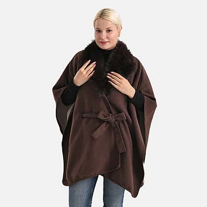 LA MAREY Signature Faux Fur Batwing Poncho (120x70 cm) - Brown