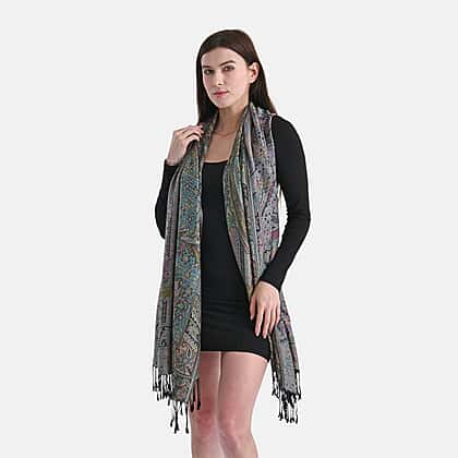 Multicolour Flower Jacquard Scarf with Tassel (70x180cm)