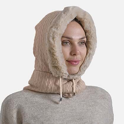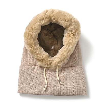 3-in-1 Cosy Warm Plush Faux Fur Sherpa Lined Winter Hat Scarf - Beige