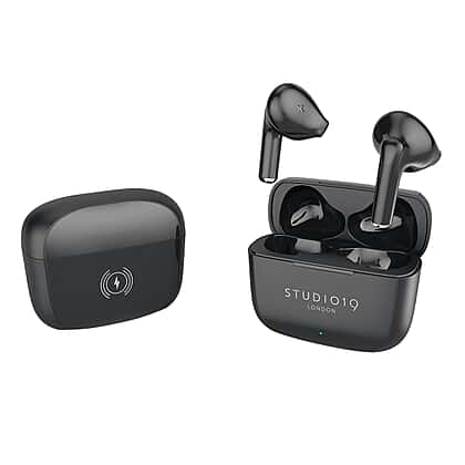 Wireless Earbuds with QI Wireless Charging Case - Black