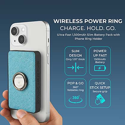 Wireless Power Ring Ultra-Fast 1,500mAh Slim Battery Pack With Phone ring Holder