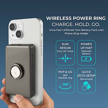 Durable, 1500mAh Slim Battery, Fast charge, Wireless charging, Portable, 360° foldable ring