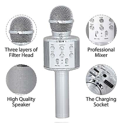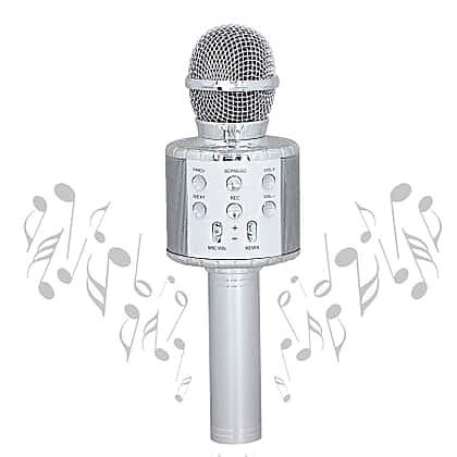 Wireless Rechargeable Karaoke Microphone with Bluetooth Speaker - Silver