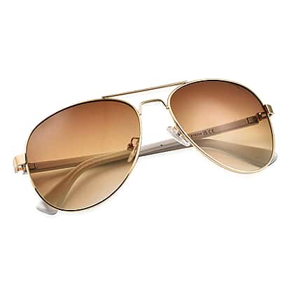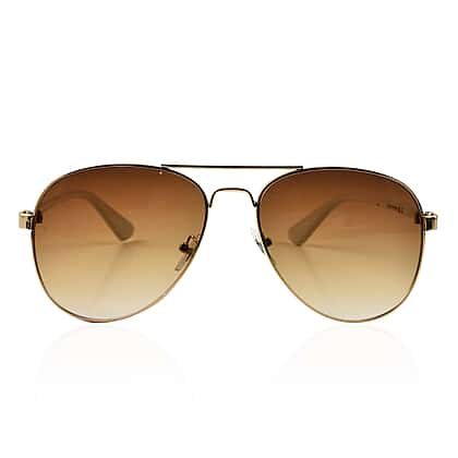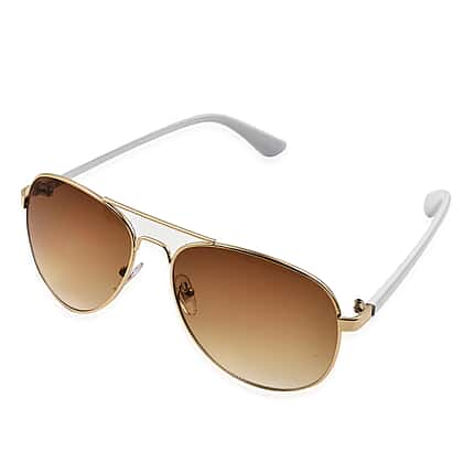 Add a classic and cool look to your vacation wardrobe collection with these all-new women's aviator sunglasses. The lenses of these sunglasses are in brown tint colour made from durable and scratch-resistant polycarbonate material. It will give you UV400 protection from harmful ultraviolet sun rays of the sun. Sunglasses have a gold-tone metal frame and nose pads to provide you with a comfortable fit. You can style it with any go-to outfit to complete the look.