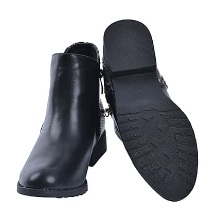 Snake Pattern Ankle Boots with Side Zipper - Black