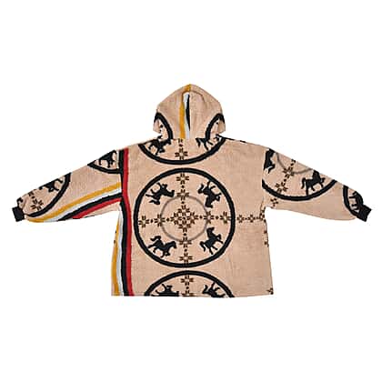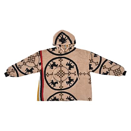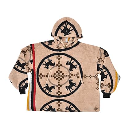 Abstract and Tribal Printed Sherpa Fabric Hoodie - Pink