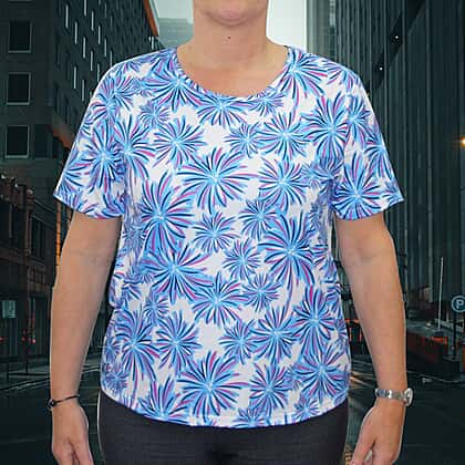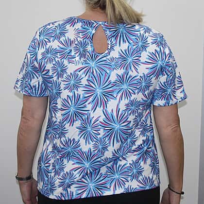 Aura Boutique Printed Short Sleeve Top (Size L) - White & Blue