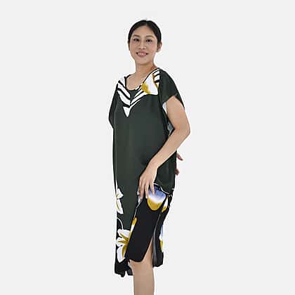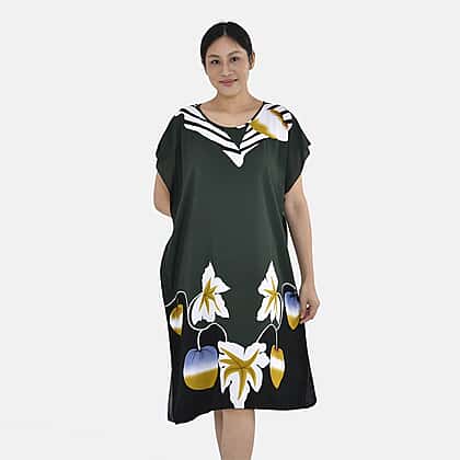 Closeout Deal - 100% Viscose Bohemian Pattern Kaftan (One Size 8-18) - Green & Black
