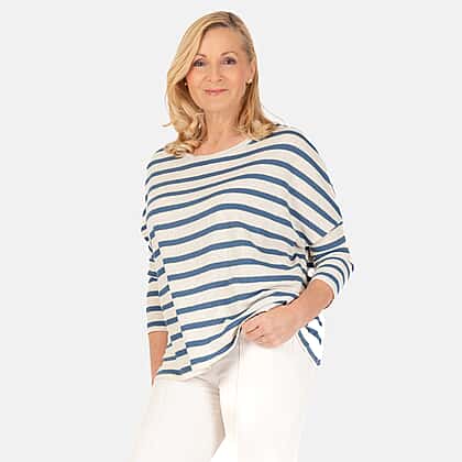 Discover the charm of our Lurex Nautical stripe fine knit top, a wardrobe must-have for those who appreciate the blend of comfort and style. This versatile piece boasts a classic crew neck crafted from a soft, fine-knit fabric that ensures day-long comfort. Infused with a hint of Lurex, it adds a subtle shimmer to the timeless nautical stripe design, elevating your look with an effortlessly polished vibe. Ideal for creating on-trend ensembles, this top is a perfect blend of elegance and casual flair, making it a versatile choice for any occasion.