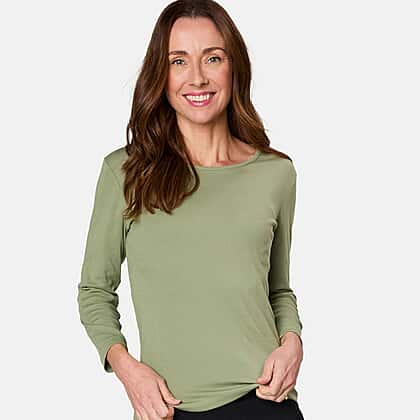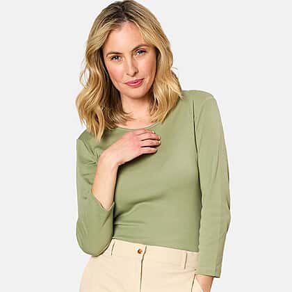 Emreco 3-4 Sleeve Crew Neck Top (Size 12) - Dark Khaki