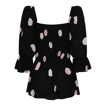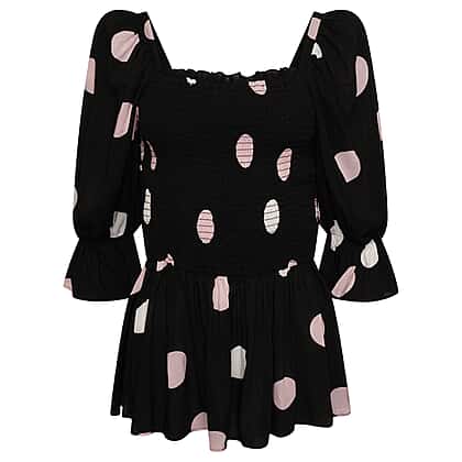 Emreco Ruffle Peplum Smock Top with Spots - Black & Cream