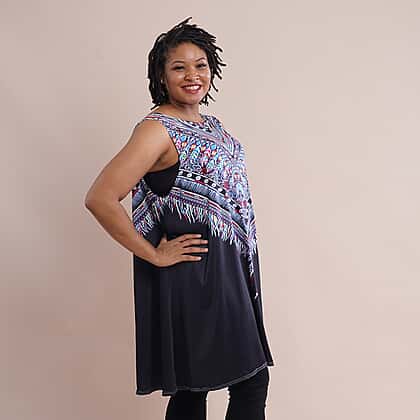 JOVIE Embroidered Pattern Sleeveless A-Line Tunic - Black
