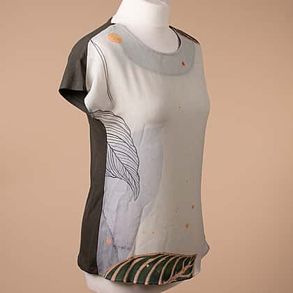 JOVIE Leaf Pattern Low Sleeve Blouse (Size S / 8) - Khaki