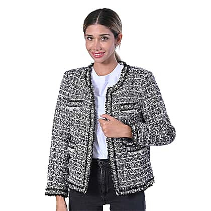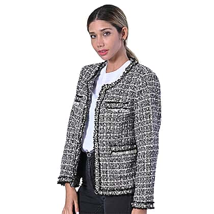 LA MAREY Tweed Jacket with Pockets - Black & White