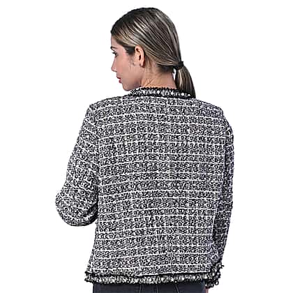 Cosy up in the cooler months in style with this tweed women's jacket from La Marey. Made from durable, warm and soft material to keep you comfortable while preserving the warmth. The enticing tweed pattern with contrasting edges gives a captivating appeal to this jacket. The open-front style of this jacket lets you layer it over your favourite dresses for a fashion-forward appearance.