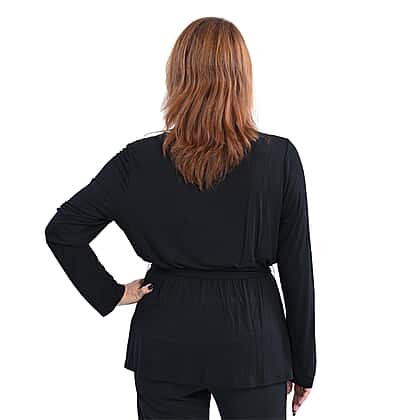 Keep your look cool yet comfy for the office or an evening out with this long-sleeve women's blouse from La Marey. Made from the premium quality 100% viscose fabric for all-day breathability and lightweight comfort, and makes it perfect for any season. Design with a V-neckline and wrap-style silhouette for a fashionable look. A customisable waist belt allows you to adjust the fit simply. Mix and match this black blouse with denim jeans and sandals for a captivating edge.