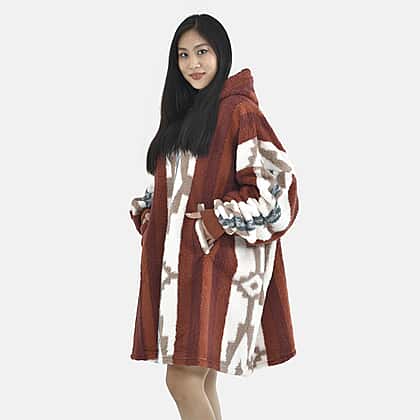 Luxurious Super Soft Sherpa Blanket Hoodie (Over Sized - 194x98Cm)- Burgundy