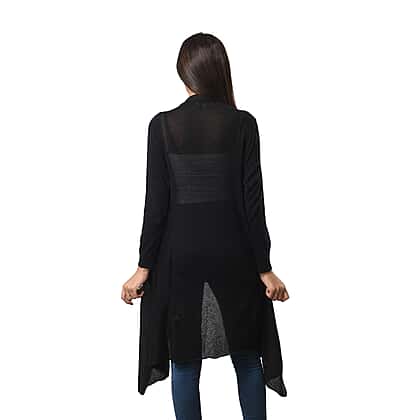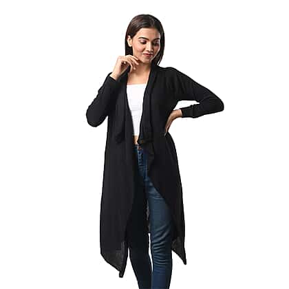 Marigold Lotus: 100% Cotton Knit Long Sleeve Waterfall Cardigan in Black