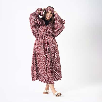 Elevate your relaxation ritual with this set of robe with eye mask & scrunchy. Designed with supreme comfort in mind, this one-size curve robe drapes gracefully on the body, promising a snug yet stylish fit. The accompanying silky eye mask ensures serene slumbers, while the matching scrunchy keeps hair effortlessly chic and tangle-free. Perfect for pampered nights or leisurely mornings, this set is a must-have for anyone cherishing self-care moments.