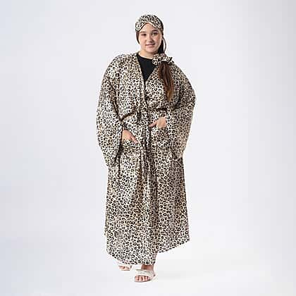 Elevate your relaxation ritual with this set of robe with eye mask & scrunchy. Designed with supreme comfort in mind, this one-size curve robe drapes gracefully on the body, promising a snug yet stylish fit. The accompanying silky eye mask ensures serene slumbers, while the matching scrunchy keeps hair effortlessly chic and tangle-free. Perfect for pampered nights or leisurely mornings, this set is a must-have for anyone cherishing self-care moments.