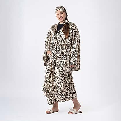 Robe with Eye Mask & Scrunchy (One Size) - Beige