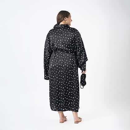 Elevate your relaxation ritual with this set of robe with eye mask & scrunchy. Designed with supreme comfort in mind, this one-size curve robe drapes gracefully on the body, promising a snug yet stylish fit. The accompanying silky eye mask ensures serene slumbers, while the matching scrunchy keeps hair effortlessly chic and tangle-free. Perfect for pampered nights or leisurely mornings, this set is a must-have for anyone cherishing self-care moments.