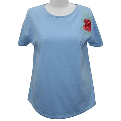 SUGARCRISP Cotton Short Sleeved TShirt with Flower Detail - Chambray Blue