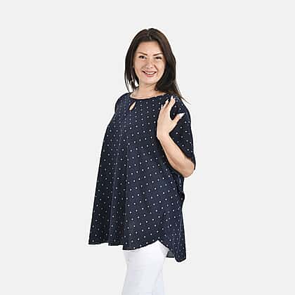 This stylish, modern high-low hem printed top features elbow-length sleeves and a crew neck with keyhole detail. You can style it with jeans or jeggings for a casual look.