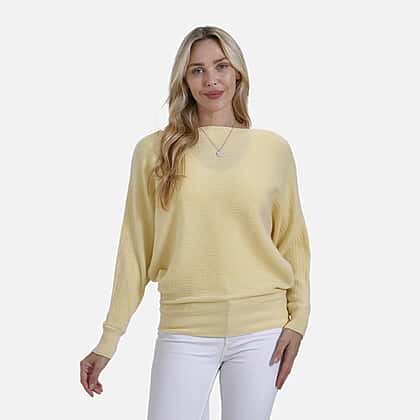 Tamsy Cotton Blend Boat Neck Bat Sleeve Jumper (One Size) - Yellow