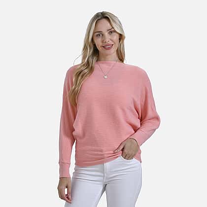 Tamsy Cotton Blend Boat Neck Bat Sleeve Jumper (One Size)