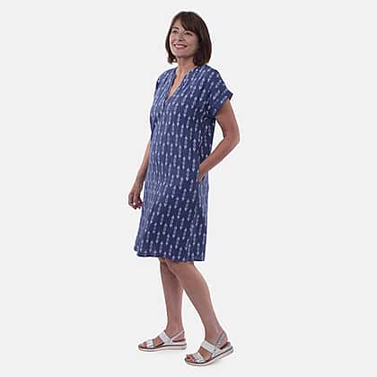 Get ready for the summer beach holiday with this lovely linen-rich short dress by Tamsy. It features an open V-neck design with grown-on sleeves for an on-trend look. It is made from linen and viscose blend fabric, making it soft, lightweight and comfortable. This dress can be paired with sandals or flats to complete that gorgeous look.