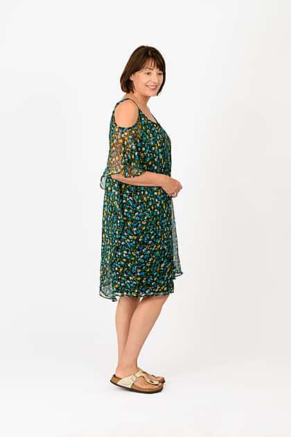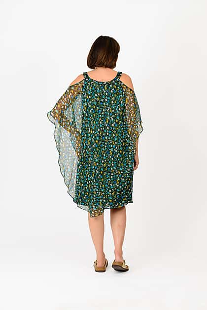 Look effortlessly chic in this flowy, cold-shoulder knee-length dress. Its flattering silhouette is great for any occasion and can be worn two ways, as a cold shoulder or sleeveless, whichever you prefer. It's one to add to your wardrobe.