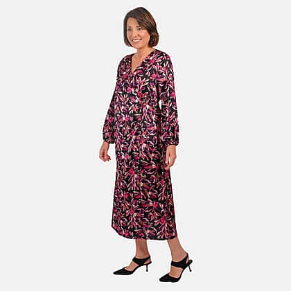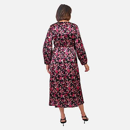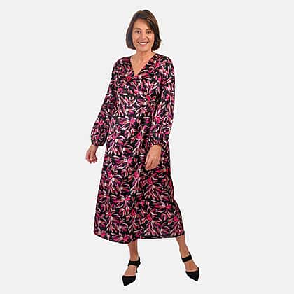 Grab this all-new Tamsy digital printed Japanese wrap dress. It features a V-neckline, with front wrap and drawstring closure. It features a full sleeves with elasticated cuff detailing. Pair with with wedges or sandals.