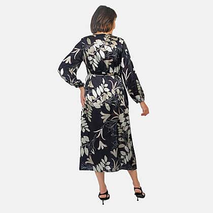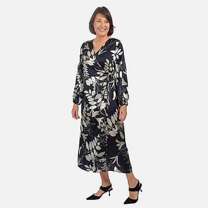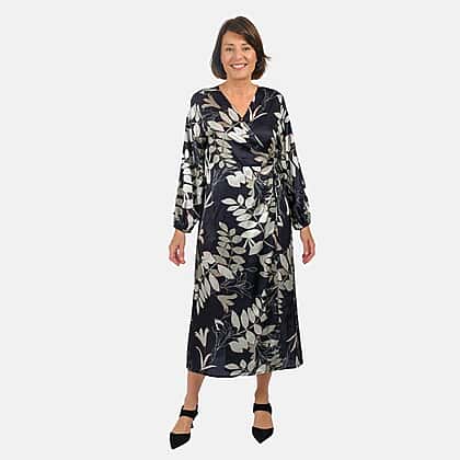 Grab this all-new Tamsy digital printed Japanese wrap dress. It features a V-neckline, with front wrap and drawstring closure. It features a full sleeves with elasticated cuff detailing. Pair with with wedges or sandals.