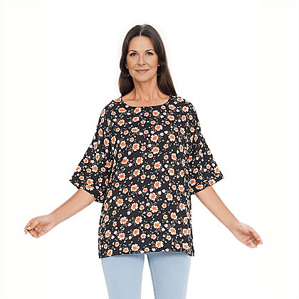 You are sure to make a statement by wearing this beautiful tropical floral pattern top by TAMSY. The cute and elegant floral prints with the coloured background make the top look more lovely and appealing. It is made of viscose, which is soft, versatile, and comfortable to wear. It has a round neck with wide three-quarter sleeves to make you feel comfortable. Wear it with loose trousers or jeans, or one can style it with a bright or casual piece to elevate your look.