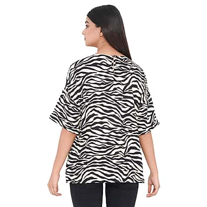 Look fashionable and trendy with this zebra print top from TAMSY. This woman top with beautiful zebra prints is made of viscose which is soft and comfortable enough that you’ll love wearing all day long. The regular hemline adds an elegant appeal, while the wide sleeves offer a chic feel, making the top look balanced when styling. Pair this top with a loose trouser or jeans, or style it with a bright or casual piece to elevate your look.