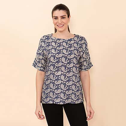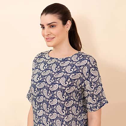 Style yourself with a chic look that maintains your cool aesthetic with this short-sleeve top from Tamsy. Made from lightweight and soft viscose fabric to keep you comfortable all day long. Features all-over paisley printed pattern for a lovely look while regular-fit silhouette with round neckline and short sleeves for a casual appeal. Wear it with any style of bottoms, and complete the look with a pair of cool sandals or sneakers.