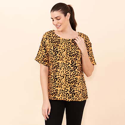 This eye-catching leopard printed top from Tamsy is an ideal choice for casual summer outings. Made from 100% viscose fabric to keep the colour and shape even after multiple washes. The all-over leopard print on this top creates a timeless appearance. Designed with a relaxed-fit silhouette with a pullover design makes it is relaxed and comfortable to wear. Team this mustard colour top with black jeans and boots for a stylish look.
