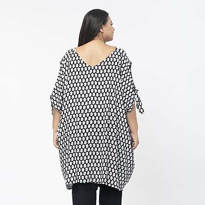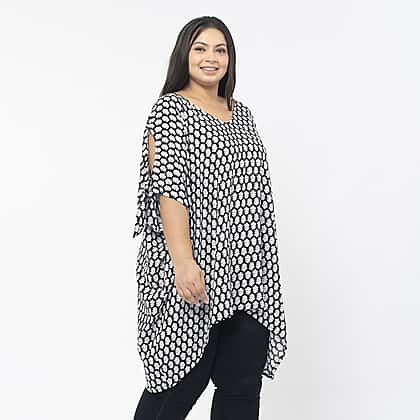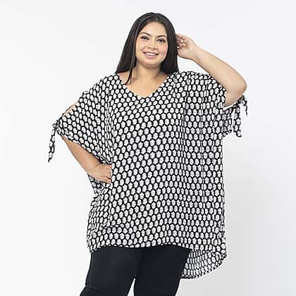 Discover effortless style with the Tamsy cold shoulder long line top. Crafted from soft viscose, this top offers a comfortable fit and a stylish look. The cold shoulder design and tie-sleeves add a playful touch, while the elegant V-neck enhances your neckline. The long line silhouette and vibrant print make it a versatile piece, perfect for pairing with your favourite jeans or leggings. Whether you're dressing up for a night out or keeping it casual, this top ensures you stay on trend.