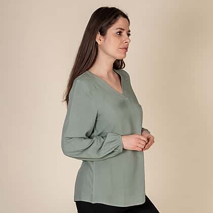No wardrobe is complete without this V-neck short-sleeve top from Tamsy. Made from lightweight and soft fabric to keep you comfortable and relaxed throughout the day. Designed with V-neckline and short sleeves to create a casual appearance. Team this women's top with jeans or leggings for a fashion-forward look.