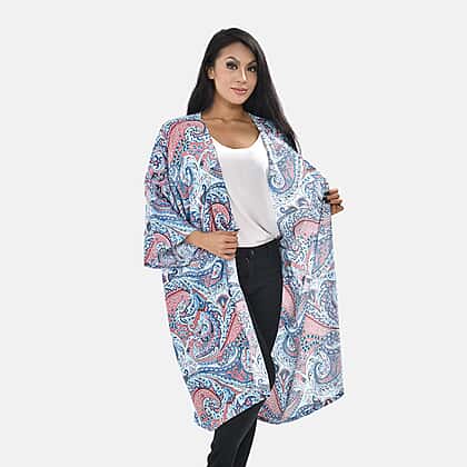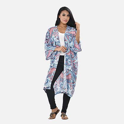 Paisly Printed Long Kimono (One Size, Fit to 22) - Blue