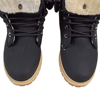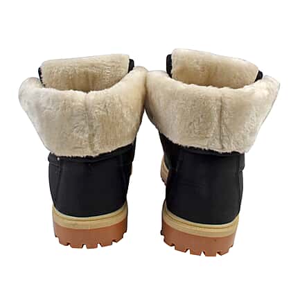Womens Flat Fur Lined Grip Sole Winter Army Combat Ankle Boots Black
